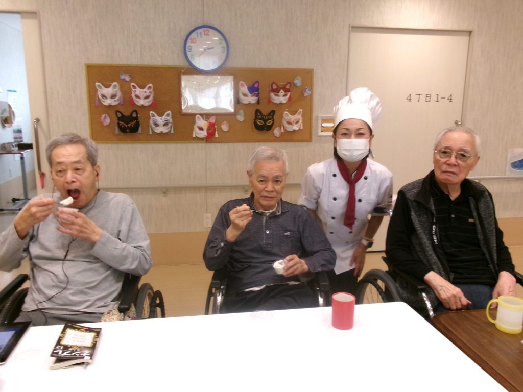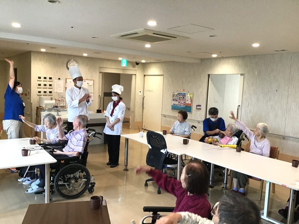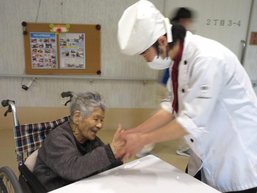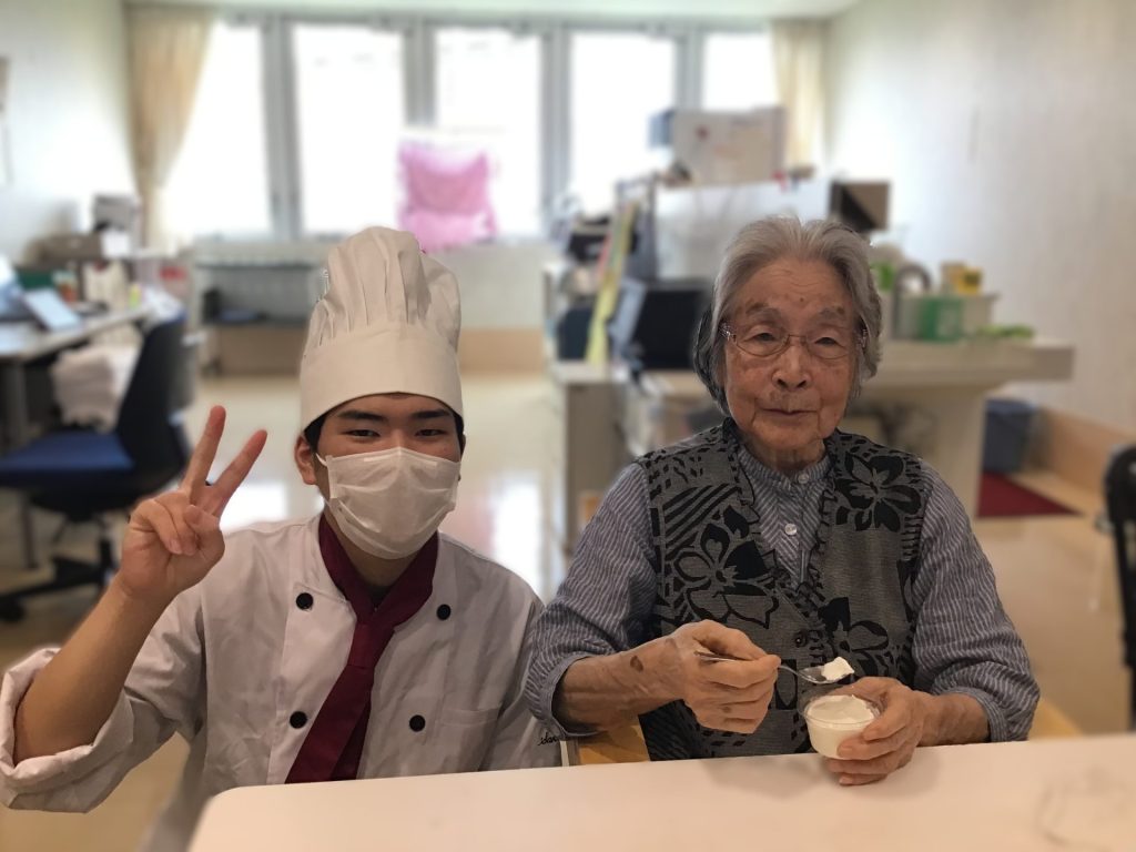 敬老の日に、崎村調理師専門学校の学生さんが“手作りジェラート”を持って訪問して下さいました。直接フロアにに行って、お一人ずつジェラートを配ってくれました。「冷たくて美味しい!」「シャリシャリしてていいね」と皆さんあっという間に完食♪