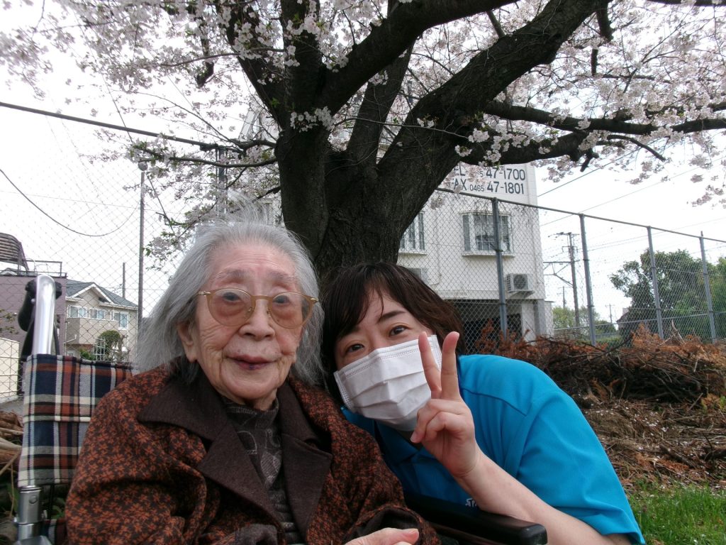 また、午後には数名の入居者様と自治会のお祭りにも参加させていただきました。前日まで大雨でしたが、当日は晴れて桜も満開🌸