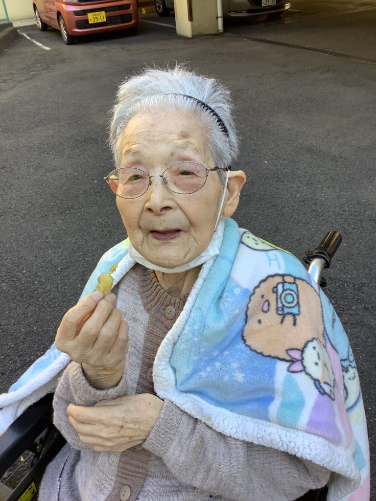 焼き芋が提供された際には「いやー、美味しそう」「大きいなぁ」と熱々のうちに召し上がられていました。このようにあったかほっこりとした時間が寒さ和らぎますね。♪