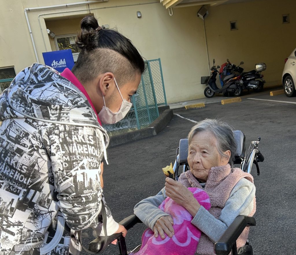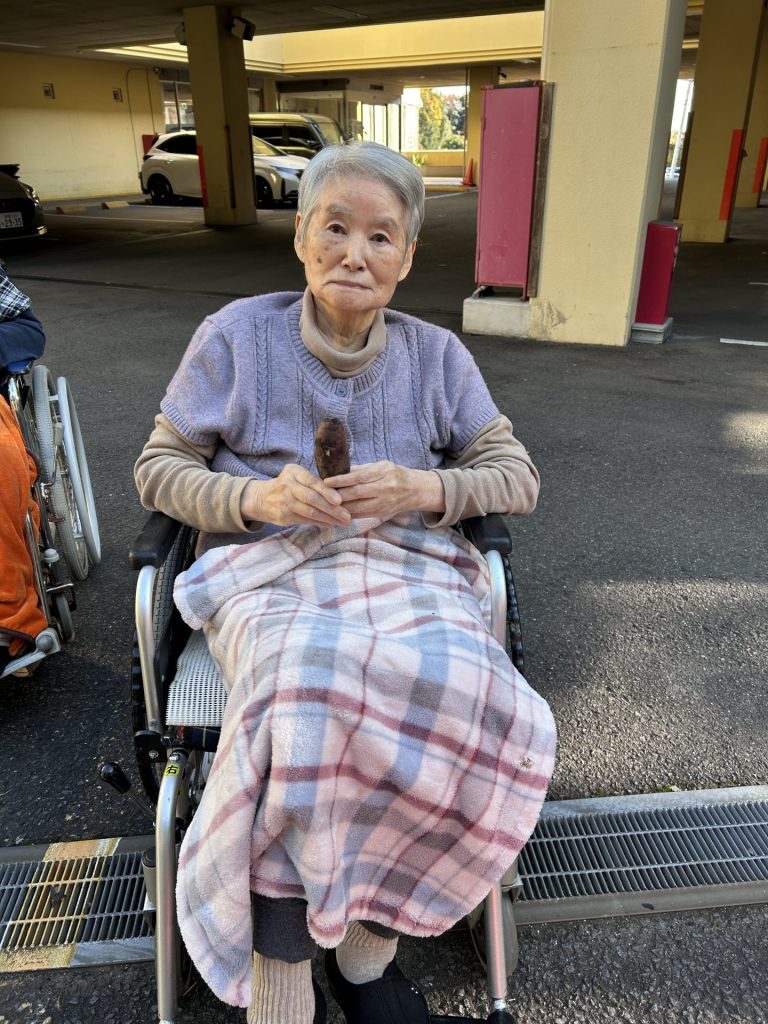 たちばなの里では毎年、恒例行事の「焼き芋を食べよう会」が行われます。この日は晴天だったので、外でみんな集まって炭火でじっくり焼いたほくほくうまうま焼き芋をいただきました。じっっくり焼いた焼き芋は黄金色に輝いています